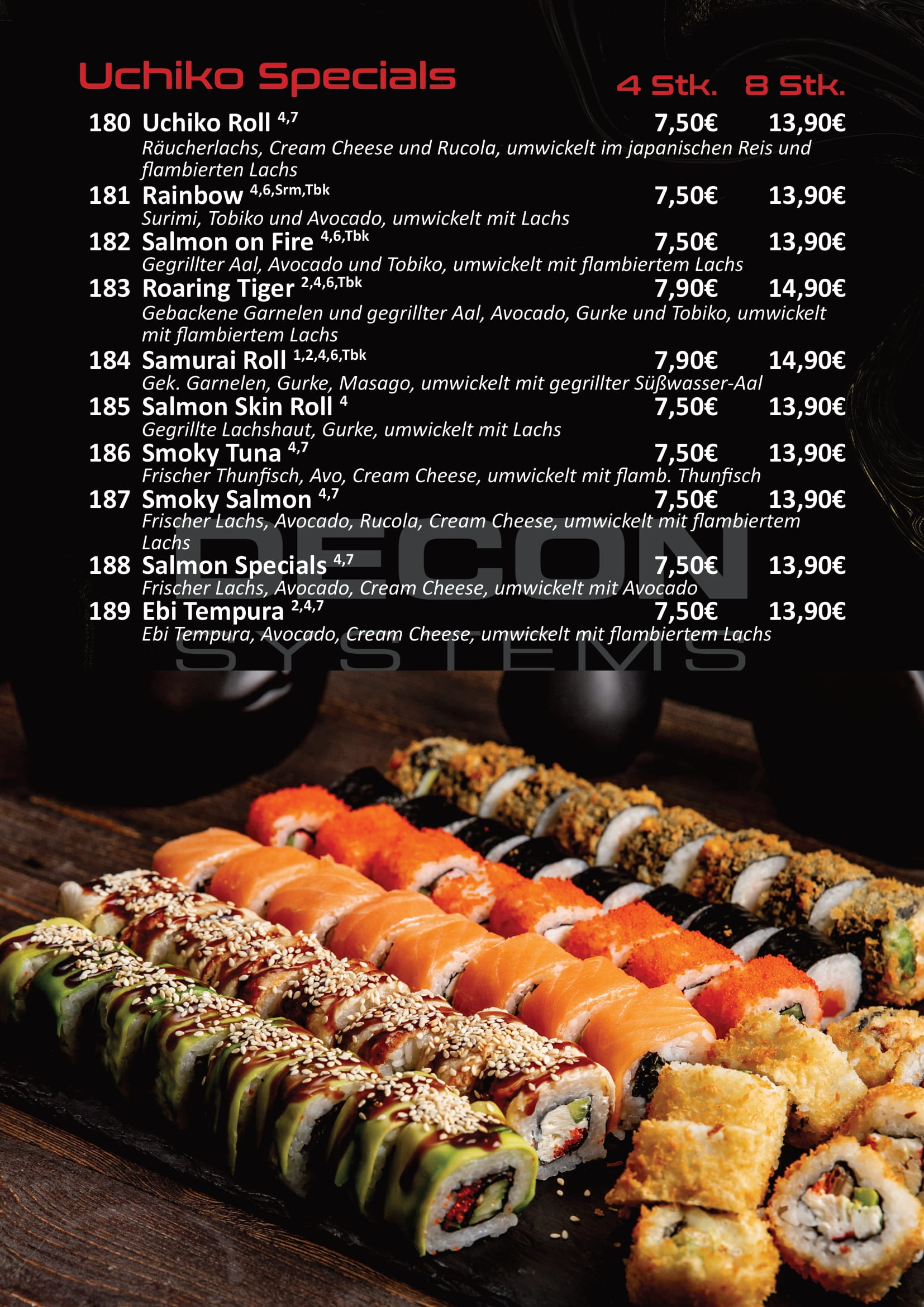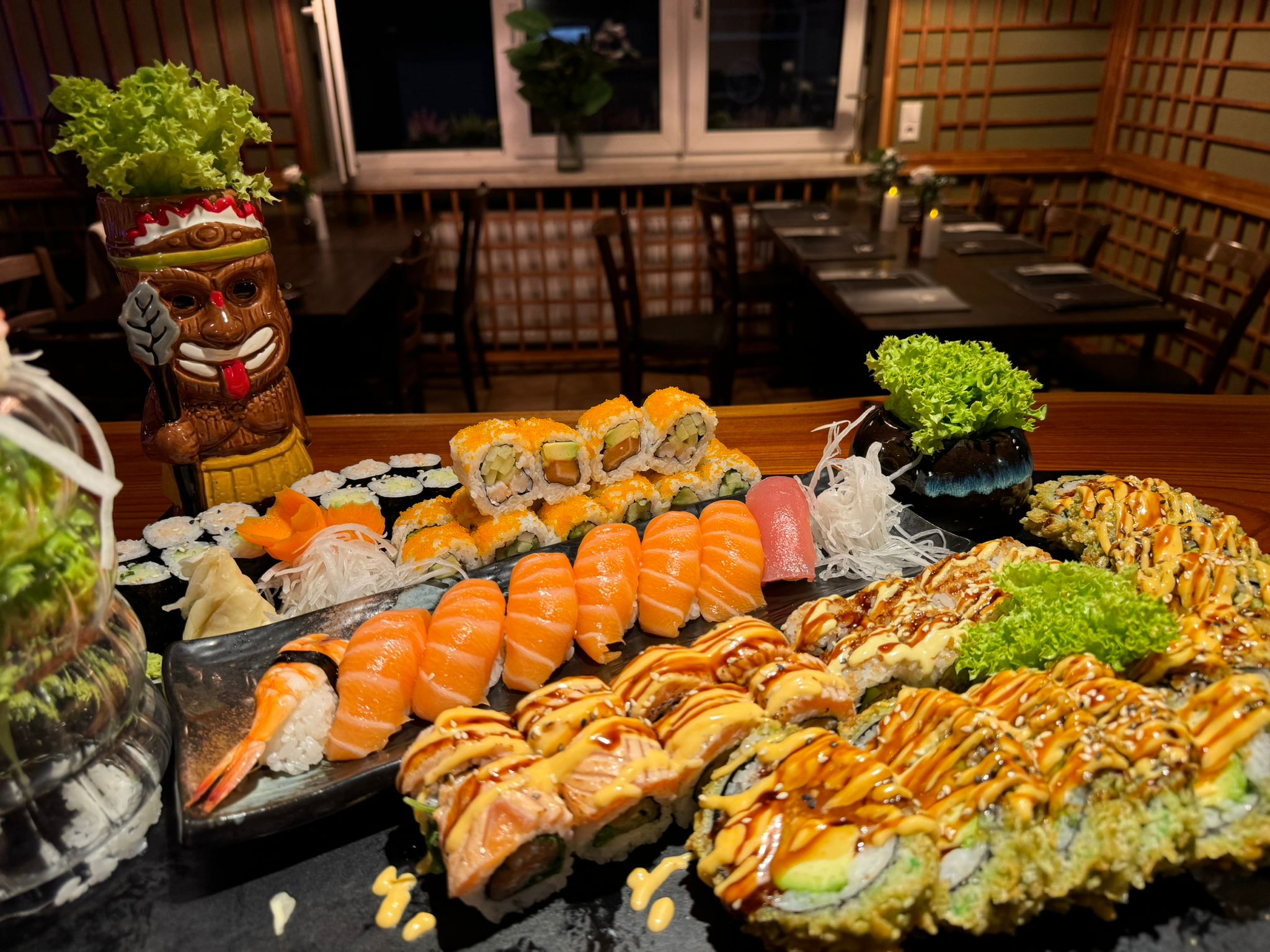 Darüber hinaus verfügt das Uchiko Restaurant über einen beeindruckenden Partyraum, ideal für private Feiern, Geburtstage oder Unternehmensveranstaltungen. Dekoration für Geburtstagsfeiern oder Events ist bei vorheriger Reservierung kostenlos, sodass Ihr Anlass perfekt in Szene gesetzt wird.